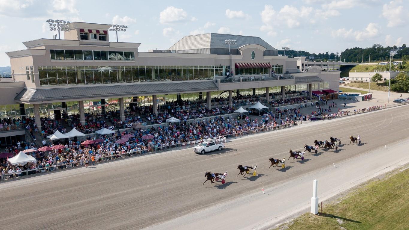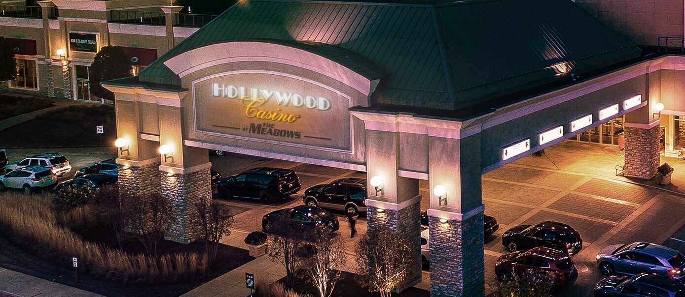 Hollywood Casino at The Meadows features approximately 2,500 slot machines, 65 live table games, 2,500+ slots, 65+ table games, a 14-table poker room, live Standard bred-horse harness racing, a Racebook with simulcast area, ESPN Sportsbook campus, an event center, and banquet rooms.